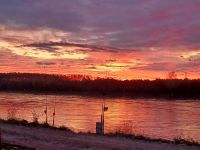 Auch war ich einmal mit Christian draußen. Wir versuchten es in einem Buhnenfeld im Rhein. Futterfische waren da, denn sie sprangen immer wieder aus dem Wasser, doch biss kein Waller.Dafür hatten wir einen tollen Sonnenaufgang. Grinzzzzzzzz.