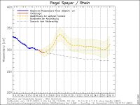Die Wassertemperatur ist wieder auf 9 °C gestiegen und der Wasserstand des Rheins fällt noch.