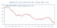 Tagsüber liegt die Temperatur zwischen -3 °C und 2 °C. Nachts geht sie bis auf -6 °C zurück. Der Wasserstand des Rheins ist sehr stark am fallen, so wie die Wassertemperatur auch. Die Wassertemperatur ging auf 4,6 °C zurück.