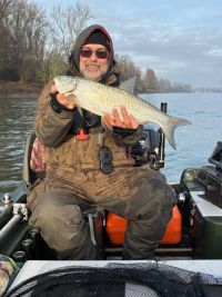 Die Wassertemperatur des Rheins ist noch ein wenig gestiegen und der Wasserstand schwankt etwas. Ich ging mit Ralf Mitte der Woche zum Spinnfischen mit meinem Boot raus. Es war ein schwieriger Tag, mit sehr viel Wind. Ich hatte auf Gummifisch zwei Zanderbisse, die ich nicht bekommen habe, sonst ging nichts.