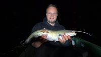 Uwe war einmal mit Köderfisch auf Zander, nachts draußen. Er konnte einen kleinen Zander von 49 cm fangen. Petri.