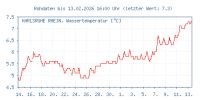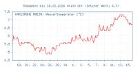 Anfang der Woche ging die Temperatur bis auf 1°C zurück und es schneite in der Nacht. Die Wassertemperatur fiel wieder unter die 7°C Marke. Der Wasserstand des Rheins fiel ein wenig.