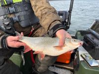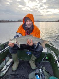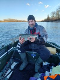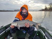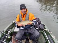 Zwei Tage später versuchten wir es noch einmal an der Stelle. Es war nebelig und kalt bei 1°C. Auch hatten wir starken Nordwind. Wir hatten ein paar Bisse und konnten eine Nase und einen Rapfen auf leichtes Gerät fangen. Petri.