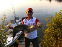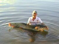 noch einen Wels von 170 cm auf Köderfisch (TOT) fangen und hatte auf dem darauf